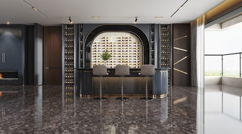 | Características Únicas | Exhibición de vinos arqueada retroiluminada con un punto focal prominente que enfatiza la colección al tiempo que mejora el ambiente de la habitación |