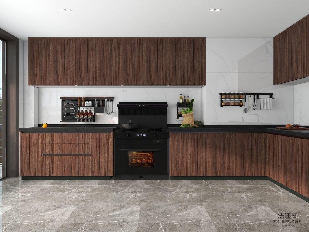 | - ¿ Qué? Why does this Luxury Stainless Modern Stainless Steel Kitchen Cabinets With Natural Wood Grain Finish - Customizable And Durableeel Modern Kitchen Cabinet combine wood grain finish with stainless steel structure? El valor es que el acabado de grano de madera le da al proyecto un calor,más identidad visual residencial mientras que la estructura del gabinete de acero inoxidable mantiene el sistema de gabinete fácil de mantener y más creíble para el uso a largo plazo. |