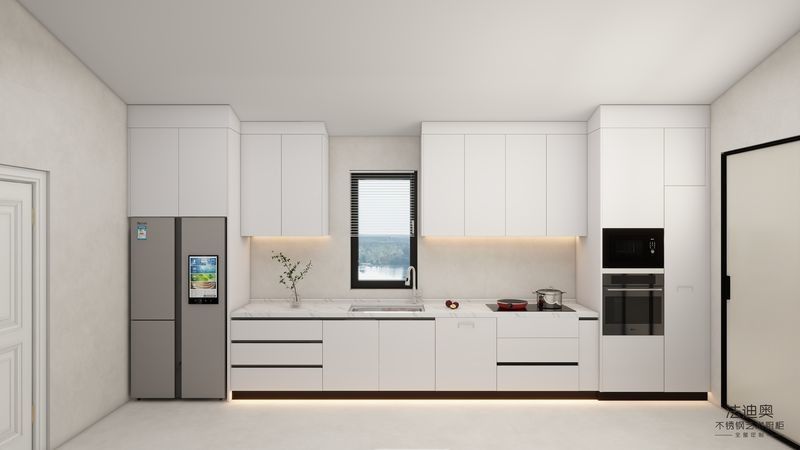 | P: ¿Qué señales de personalización ya son visibles en esta página de muebles de cocina modernos de acero inoxidable blanco de una sola pared? Las señales más claras son la coordinación de tamaño, el color blanco y la planificación del almacenamiento. Estas pistas ayudan al comprador a juzgar si el proveedor puede adaptar el producto a un proyecto en lugar de enviar un módulo minorista fijo. |