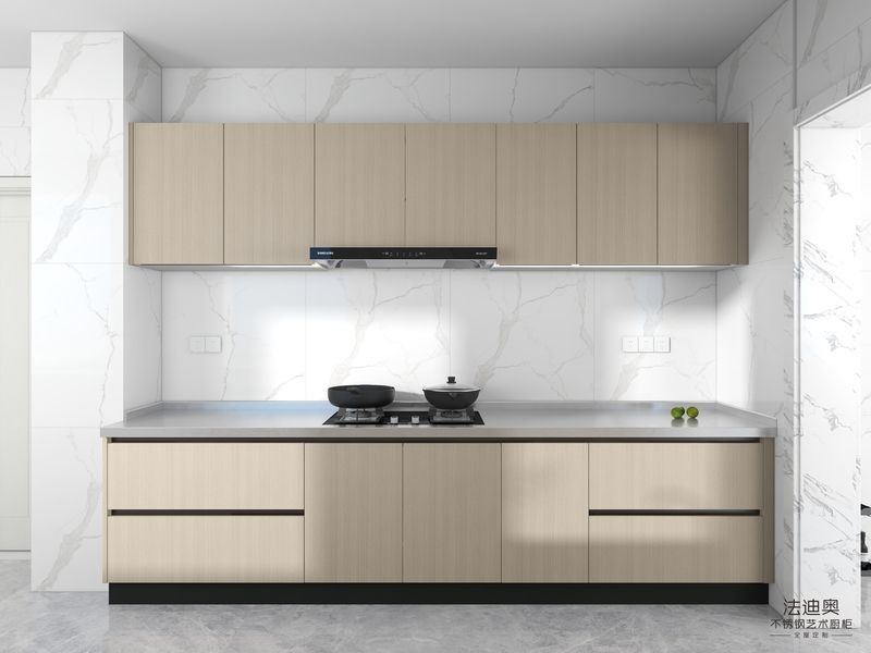 | P: ¿Qué tan duradero es el acabado visible en este Acero inoxidable Doble Lineal gabinetes de cocina de madera ligera? La durabilidad debe juzgarse a través de la pila de materiales real que se muestra en la página: estructura de gabinete de acero inoxidable de primera calidad junto con grano de madera y el conjunto de hardware especificado.Eso es más útil que confiar en un lenguaje amplio y de lujo.. |