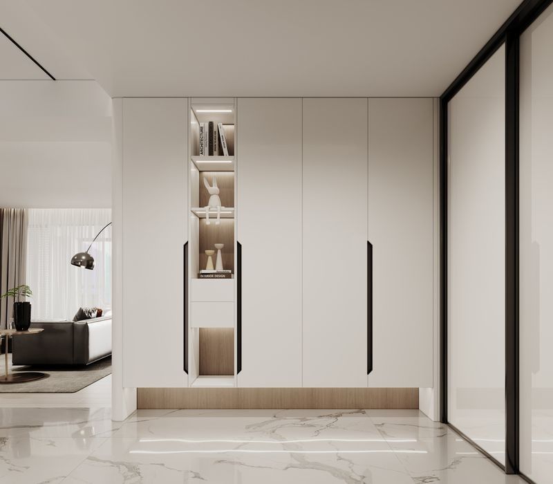 También combina múltiples compartimentos para zapatos, accesorios y artículos decorativos con materiales libres de formaldehído, lo que ayuda a los compradores a juzgar si la narrativa del acabado, la integración de electrodomésticos y la planificación de uso diario pueden mantenerse alineados en un solo sistema.