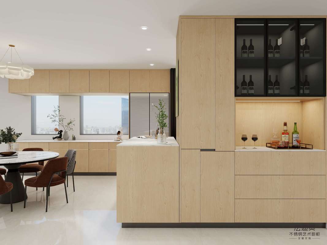 La Serie Urbana Fadior presenta una nueva interpretación del diseño de cocina moderno, combinando texturas de vetas de madera clara y paneles blancos nítidos en una distribución en forma de U altamente funcional. Fabricados con acero inoxidable 304 de primera calidad, estos gabinetes ofrecen una durabilidad duradera manteniendo una estética limpia y aireada. La estructura de acero inoxidable cepillado se combina a la perfección con las puertas de chapa de roble blanco, creando un equilibrio perfecto entre la resistencia industrial y la calidez minimalista. Detalles cuidadosos como manijas ocultas y juntas al ras mejoran la apariencia aerodinámica, mientras que la iluminación LED integrada garantiza una visibilidad óptima. Diseñada para la vida moderna, la última colección de Fadior demuestra que el acero inoxidable puede ser elegante y acogedor.