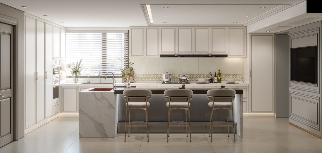 | P: ¿Se puede personalizar este mueble de cocina de acero inoxidable integrado de color blanco puro estilo francés PureLine para las dimensiones del proyecto? Sí. La especificación actual ya apunta a la coordinación de tamaño basada en proyectos junto con la planificación de distribución y la selección de acabados, por lo que la página admite la evaluación de proyectos personalizados en lugar de una lectura de stock fijo solamente. |